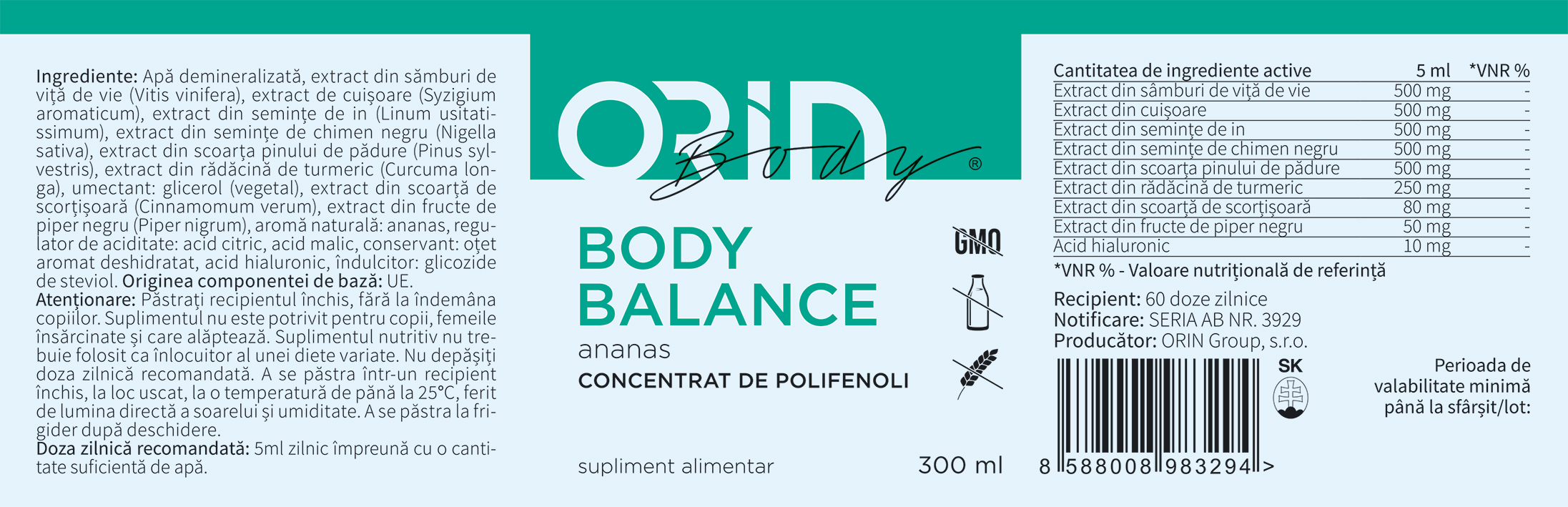 ORIN BODY BALANCE este un concentrat de polifenoli naturali, care pot susține funcția creierului, pot întări vasele de sânge și pot întârzia simptomele demenței la bătrânețe.